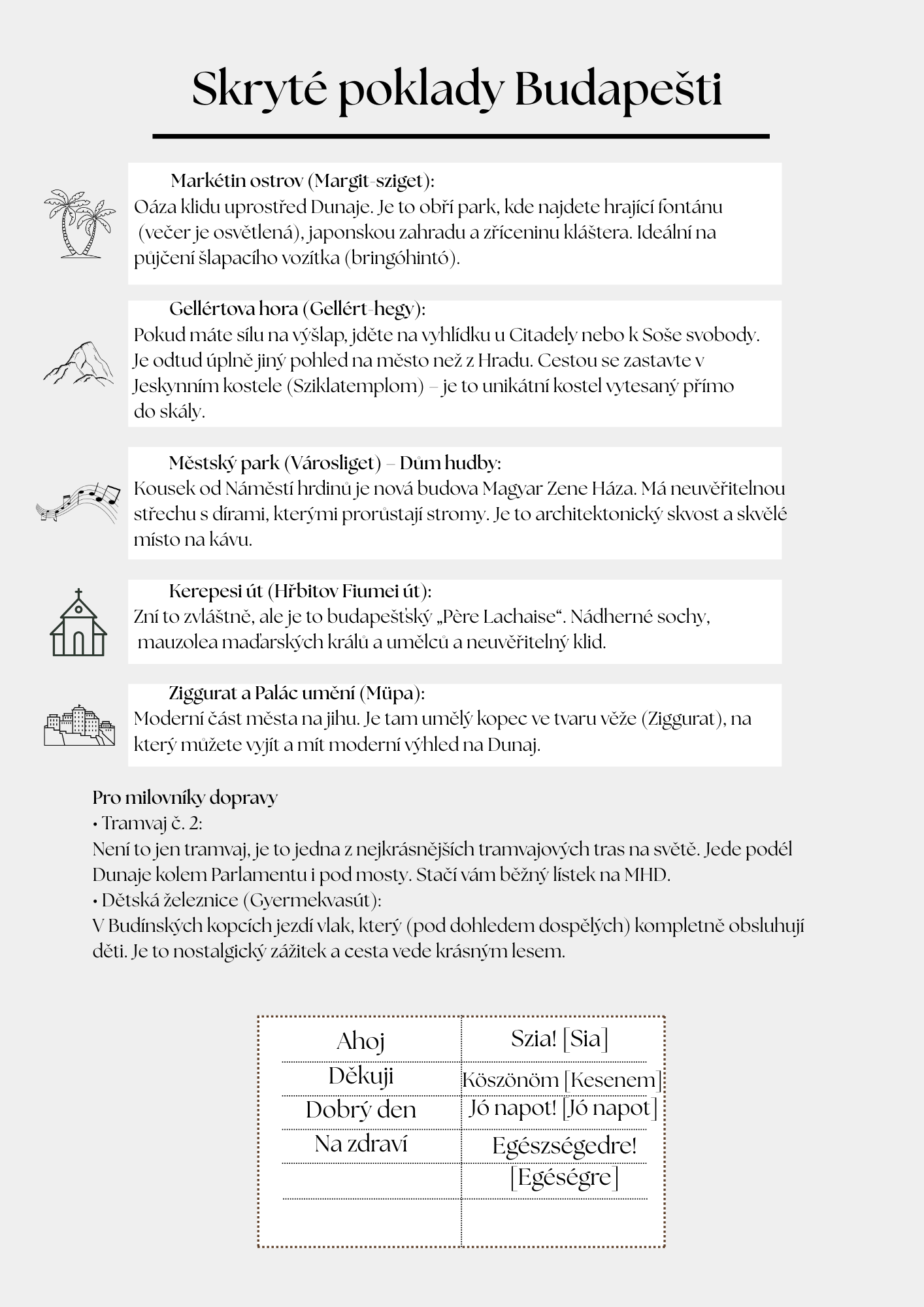 • ???? Vizuální zpracování: Moderní design s fotkami a mapkami (podobně jako v galerii u Budapešti).