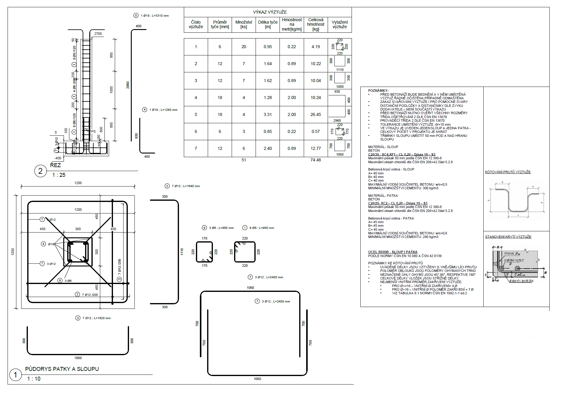 Orientuji se ve statických výpočtech – umím z nich vyčíst průměry, rozteče výztuže i další potřebné údaje. Zvládnu si sám určit konstrukční zásady jako jsou kotevní délky, stykování, ohyby prutů nebo zhušťování třmínků u sloupů.